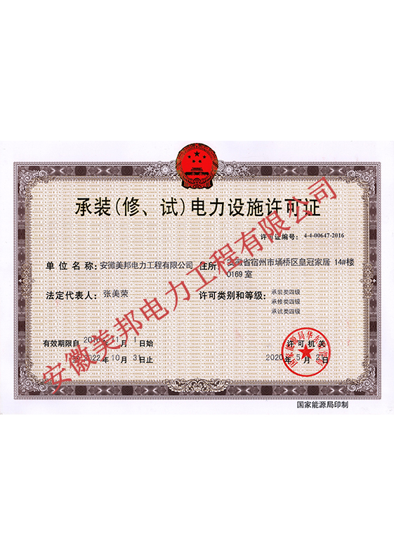 承裝修試電力設(shè)施許可證